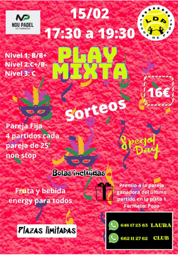 Per a el mes vinent de desembre organitzem un curs intensiu per a millorar el teu nivell de pàdel, classes de 1,50 hores i dos dies fixos a la setmana, tres alumnes de nivell similar, la metodologia consisteix en 45 minuts de perfeccionament de cops específics i els altres 45 minuts partit amb monitor per a desenvolupar tàctica i posicionament en pista.