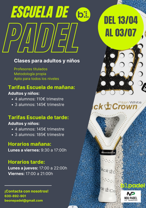INSCRIPCIONS OBERTES ESCOLA PADEL